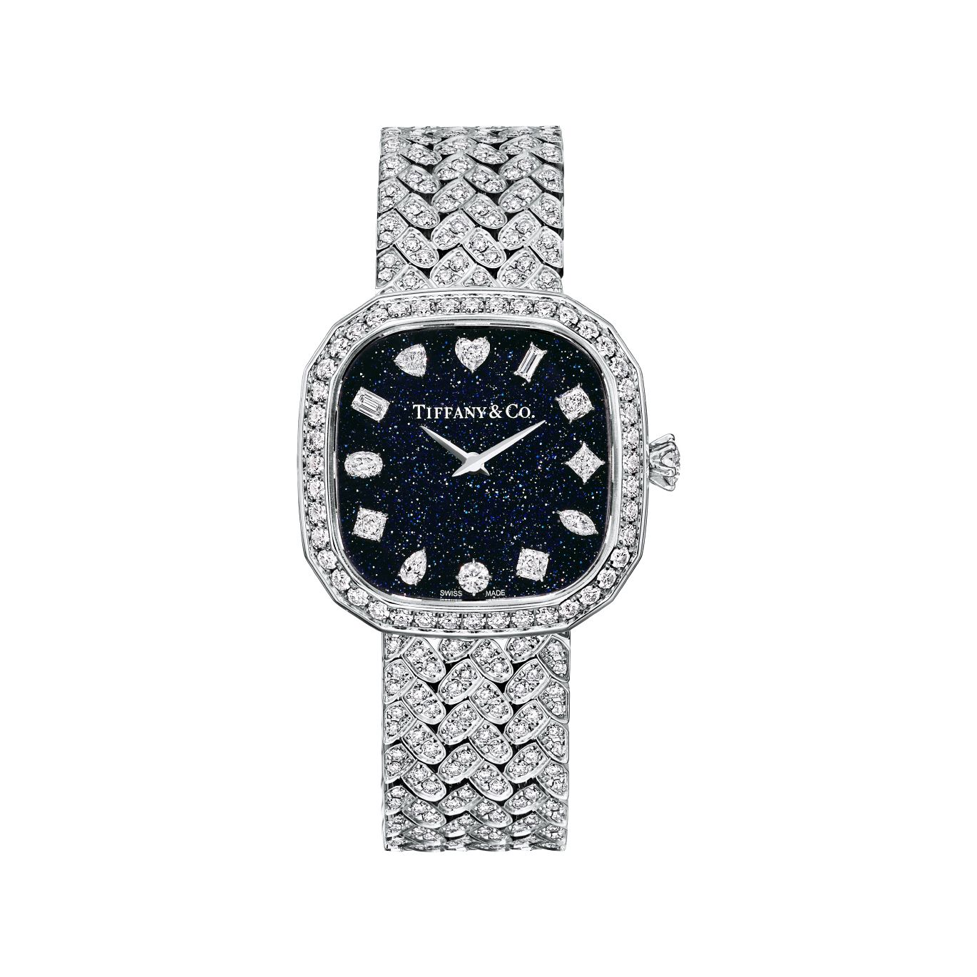 Tiffany & Co. 蒂芙尼从品牌卓越艺术传承中汲取灵感,推出全新Tiffany Eternity系列18K白金全铺镶钻石表链腕表,彰显其在钻石领域的权威地位与深厚的高级制表传承。新作采用Tiffany Eternity系列标志性的枕形表壳设计,并搭配璀璨夺目的砂金石表盘。