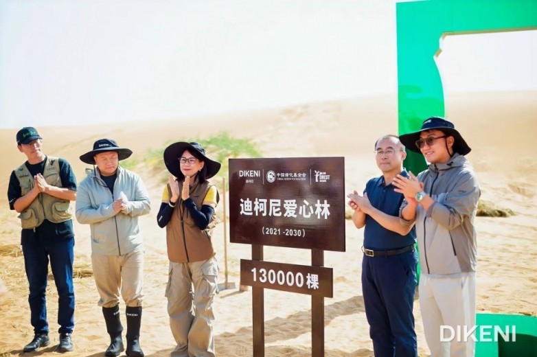 种树植心、向善致远。自2021年起,DIKENI迪柯尼便与中国绿化基金会推进“沙漠锁边林”计划,致力于沙漠生态修复,传递品牌向善之心。本次活动中,DIKENI迪柯尼再次携手中国绿化基金会举行了未来五年公益合作捐赠仪式暨揭牌仪式。