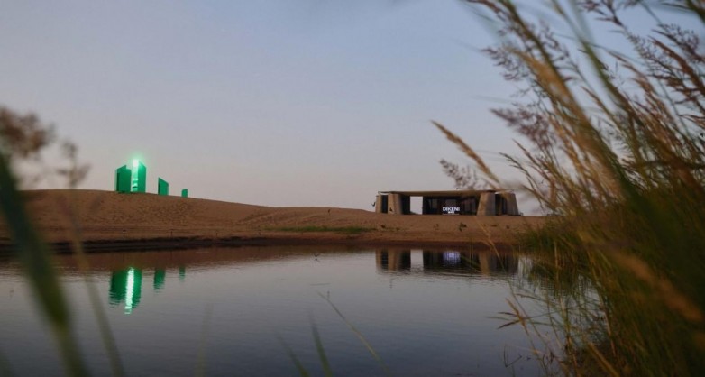 在此,DIKENI迪柯尼以通过DIKENI【容RONG系列艺术装置】传递 “生态艺术·镜界共容”的时尚理念,把艺术展搬到沙漠里,使可持续成为可感知的时尚体验。