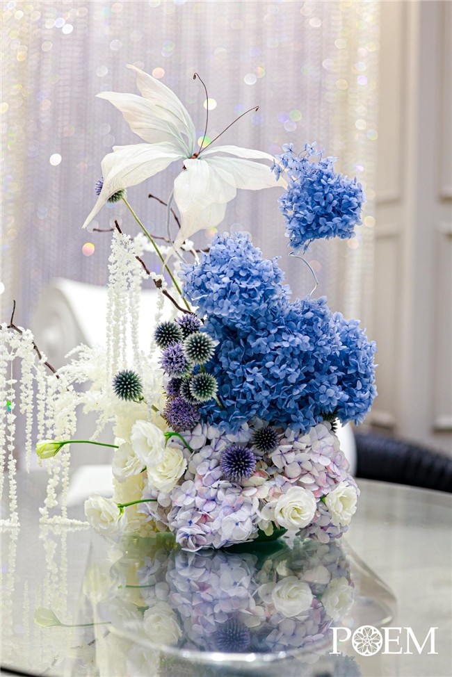开业仪式现场的茶歇区以低饱和度花艺点缀,搭配金属器皿与哑光陶瓷,呼应品牌“低调奢华”的美学理念。花艺造型轻盈而富有结构感,与空间中的罗马柱、曲线陈列相映成趣,为嘉宾提供了一处可驻足、可品味的静谧角落。