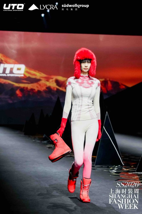 作为“无界”理念的延伸,UTO本次大秀的合作矩阵堪称亮点。品牌携手全球纤维科技领导者LYCRA®(莱卡®)品牌与与享有盛誉的Südwolle Group (德国南毛集团)品牌,共同打造这场科技与美学的盛宴。南毛集团作为全球知名的全羊毛和羊毛混纺类精纺纱线供应商,其高品质的天然原料为UTO产品带来了绝佳的亲肤触感与环保属性;而LYCRA®(莱卡®) 纤维提供的卓越弹性与持久舒适度,则确保了时装化设计的同时不失运动所需的自由感;此外,UTO贴身层更有THERMOLITE® ALL SEASON纤维的加持,其创新型纤维结构可以感应微环境变化, 保暖控湿,为穿着者提供全天候的温暖舒适的穿着体验。THERMOLITE® 品牌作为全球领先的轻质保暖科技品牌,致力于为消费者提供温暖、干爽与舒适的穿着体验。