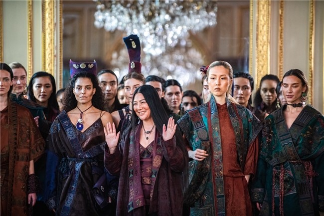 大秀通过故宫系列、敦煌系列、博古纹系列、明代凤冠系列、凤 凰宝相系列、蝶恋花系列等充满东方元素的服装,呈现了中华文 化的深厚底蕴,同时融入西方立体剪裁技术,实现东西方美学的 互文与共生。