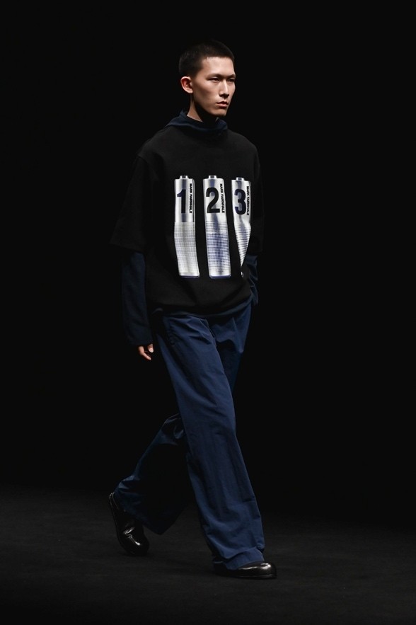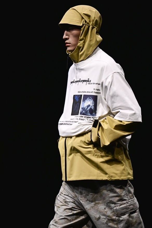 本次发布会设计的核心亮点,聚焦于虎鲸精神与东方哲学的交融,将海洋生物特质、环保责任与时尚表达深度绑定。材质上,优选环保面料、探索可降解辅料,减少传统化工面料使用,传递对自然的敬畏;剪裁廓形上,以“鲸鳍切水”的利落凸显果敢,“鲸身穿海”的流畅释放自在,将“勇敢与自由”转化为可穿的时尚语言,适配不同身形与场景;视觉符号上,借“积木”“电池”“新能源”标志搭配自然色系,在践行环保理念的同时,兼顾多场景日常穿着的实用属性,让潮流美学与绿色生态呼应。