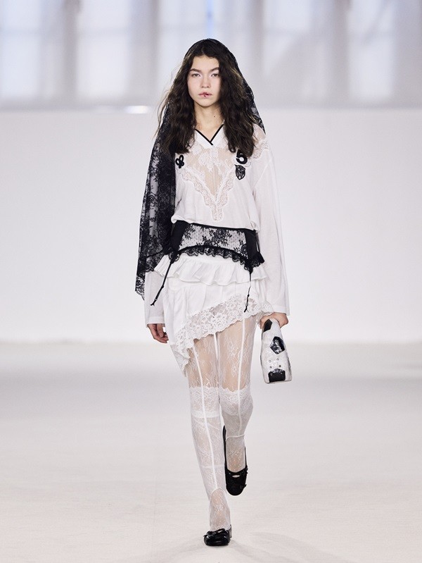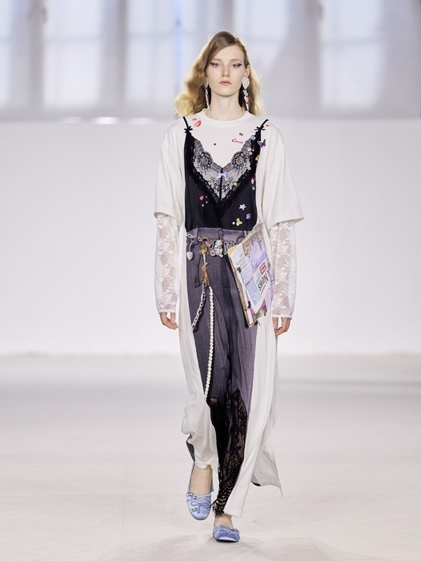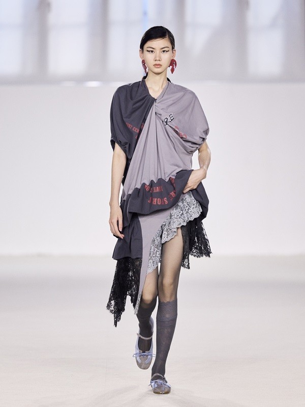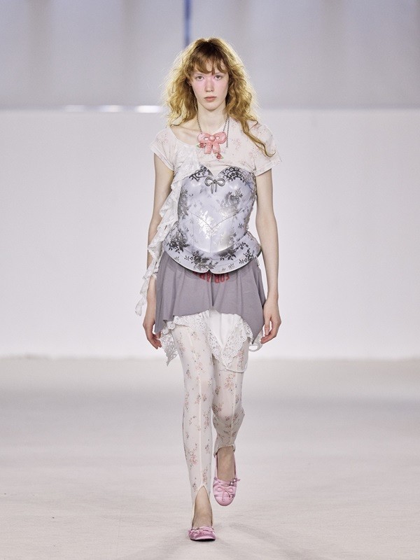 蕾丝与漫画元素巧妙融合,将恋爱中的浪漫气息悄然释放;而对蕾丝与运动元素的解构重组,也正是FORDARE极具辨识度的经典设计语言;Slogan T恤系列传递多元态度——略带调侃的趣味表达“love is ok”、“塑料关系”;也有“best woman”、“永远的爱”所承载的真诚期许。3D打印胸衣凭借独特造型,诠释出本季主题下强大的纯爱战士形象。此外,本次秀场携手陶瓷品牌it doesnot matter,共同探索配饰领域的新可能。