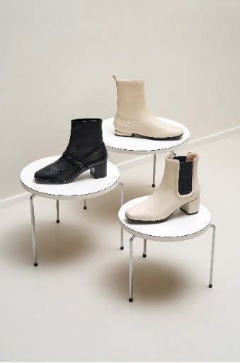 本季全新SHAPE 35 SQUARED型塑35方头系列以黑白两色靴款诠释舒适美学,搭配 35mm覆皮方跟,兼具舒适稳健与率性自在。黑色靴款沿袭经典玛丽珍鞋型,鞋面拼接设计点缀精致搭扣,巧妙拉长腿部视觉比例,彰显复古时尚魅力;白色靴款采用方头设计搭配挺阔鞋型,经典简约,凸显当代都市女性的率性气质。全新MARGOT舞悦系列将芭蕾舞鞋的轻盈灵动与低帮平底设计的舒适特性融合,并以弹力皮革拼接打造袜套式靴筒,便于穿脱,柔软轻盈的PU大底搭配覆皮低跟,带来舒适柔软的穿着体验。本季全新靴款均选用ECCO高品质皮革,内里选用皮质或半皮半织物衬里,细腻包裹中透出奢华质感,让行走惬意自如。