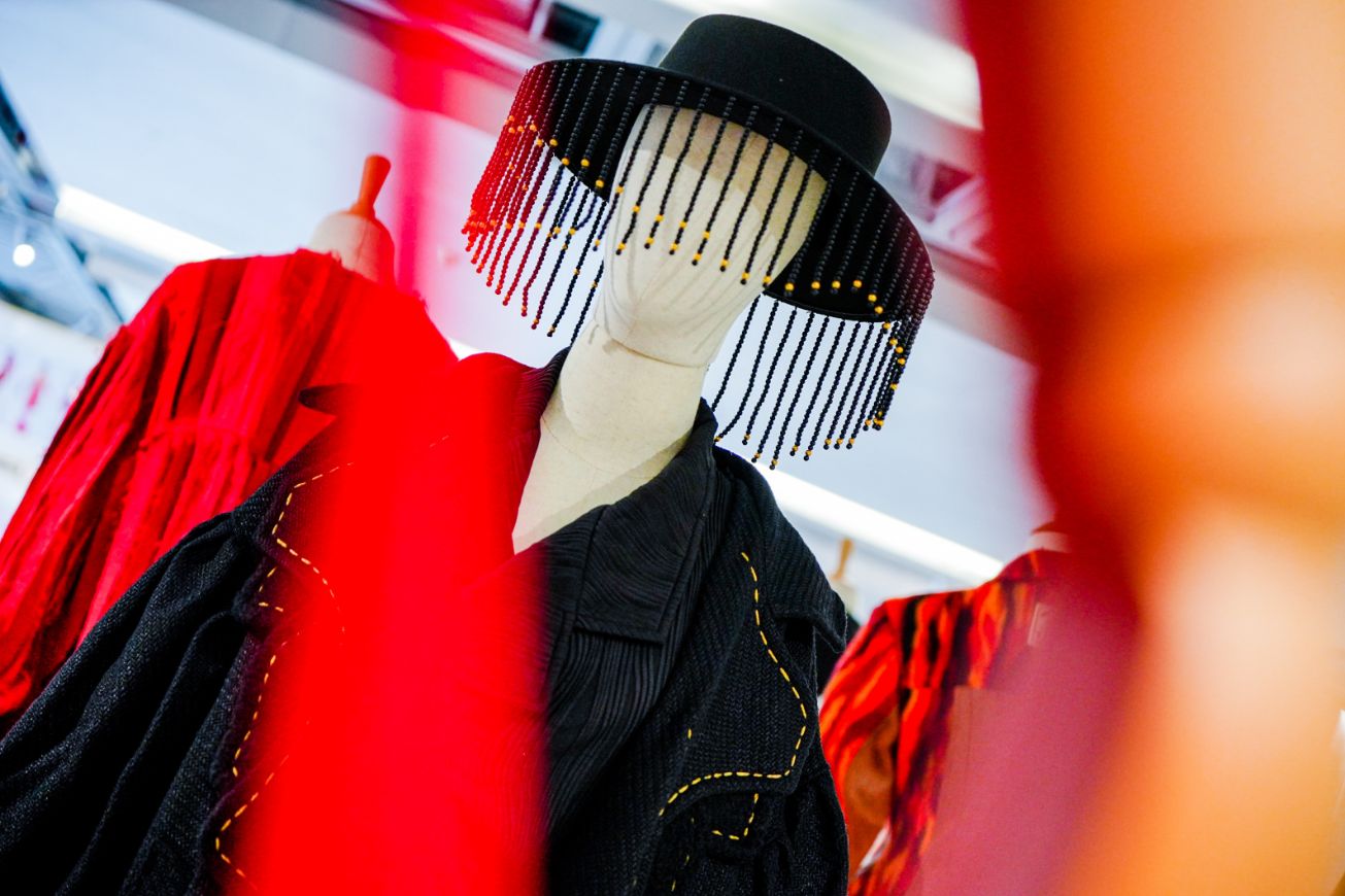 为全景呈现当代中国服装设计的蓬勃活力,展览精选全国100套原创时装集中亮相,参展者涵盖“金顶奖”得主、中国十佳服装设计师等资深创作者,也有怀揣梦想的高三学子;既有深耕市场二十余年的成熟品牌,也有新锐独立品牌。作品兼具苏绣、苗绣、扎染等非遗手工艺传承与生物基面料、AI生成图案等前沿技术探索,尽显东方美学当代表达。