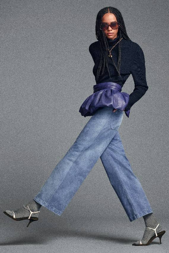 整个系列中,巧妙的比例美学贯穿始终。染色工装与丹宁单品,搭配垂坠皮革巴斯克腰带、柔中带型的针织衫、飘逸衬衫及蕾丝内衣式上衣。长款腰带束紧腰线,勾勒出鲜明廓形,塑造量感同时重新定义比例之美。飘逸感面料为每套造型赋予灵动、松弛与随性风格。与短款皮夹克搭配,让对比尤为明显——流畅感和利落结构,光泽质感和哑光肌理,透色和实色。于张力之间,Chloé独有的品牌格调得以呈现——性感、自信、低调别致,色彩成为自我表达的载体。浓郁的基础色与鲜活亮泽的色调,为Chloé标志性的裸色、杏色、米白色与藏青色系焕新添彩。柔和玫瑰粉和开心果绿,与宝蓝、琥珀等宝石色调交织,营造出意想不到的和谐配色。肌理与比例的精妙契合,打造出舒适与独具Chloé风格的穿搭造型。
