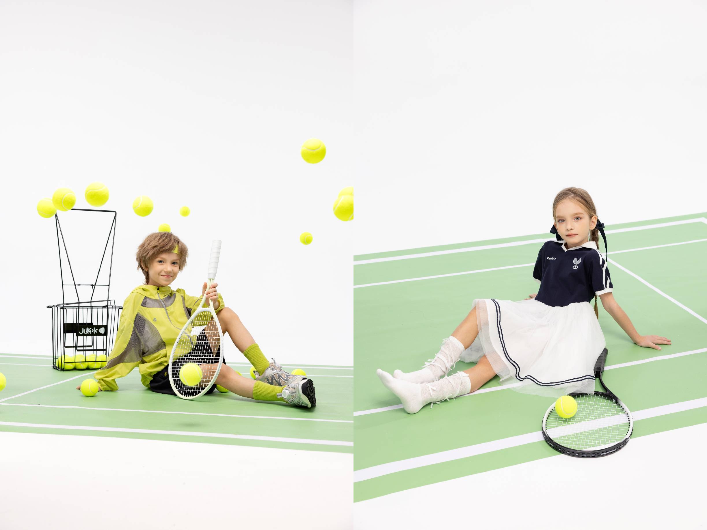 系列通过“户外休闲”与“综合训练”双线叙事,将景迈山的自然意象与运动中的动态美学相融合,通过运用虚焦花卉、渐变与扎染晕染等视觉手法,构建出朦胧而富有层次的设计语言。色彩选用芭蕾舞粉、奇域粉、卡其灰、龙吟绿、暮棠橙等,于朦胧中透出活力,诠释“形无拘、色无界”的探索姿态,呼应儿童成长中无限的生命力。