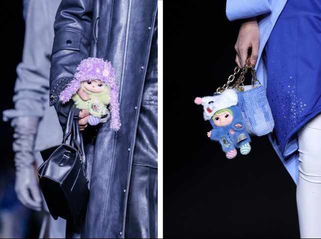 此外,位于场馆核心区域的“WAKUKU痛电梯”,成为本届时装周打卡点,成功将潮玩品牌植入年轻时尚人群的社交语境。在3月20日晚的北京时装周青年设计师扶持计划中,WAKUKU亮相走秀环节,青年设计师将其融入时尚创作,这一尝试打破了传统IP联名的贴牌模式,激发了时尚圈设计师设计灵感。