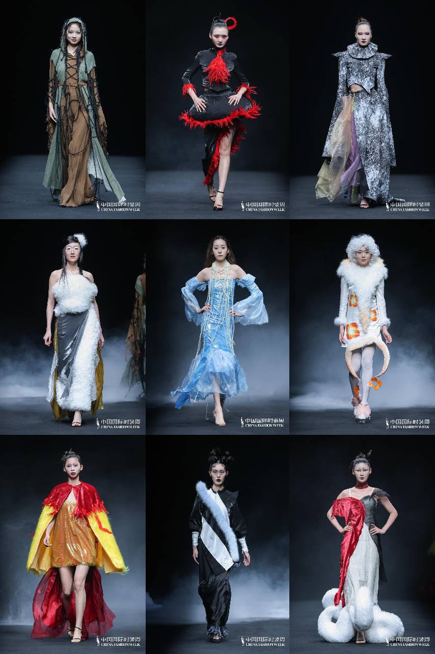 2.以现代视觉语言重译上古神话,将“青耕羽翼”“烛龙明灭”等意象化为流动的呼吸感,用极致的色彩碰撞与夸张廓形重构神兽的视觉冲击。