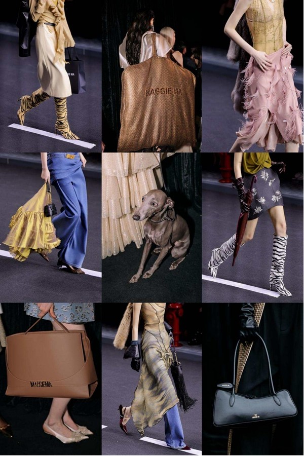 MAGGIE MA本季以金合欢黄、橄榄绿、焦糖棕、深咖、灰等低饱和复古大地色混合牛仔蓝为主调,塑造利落摩登的时尚质感;辅以宝蓝、墨黑、纯白作为精致撞色点缀,在平衡视觉层次的同时,强化设计辨识度,精准呼应 2026年“复古大地色+克制撞色”的主流色彩趋势。