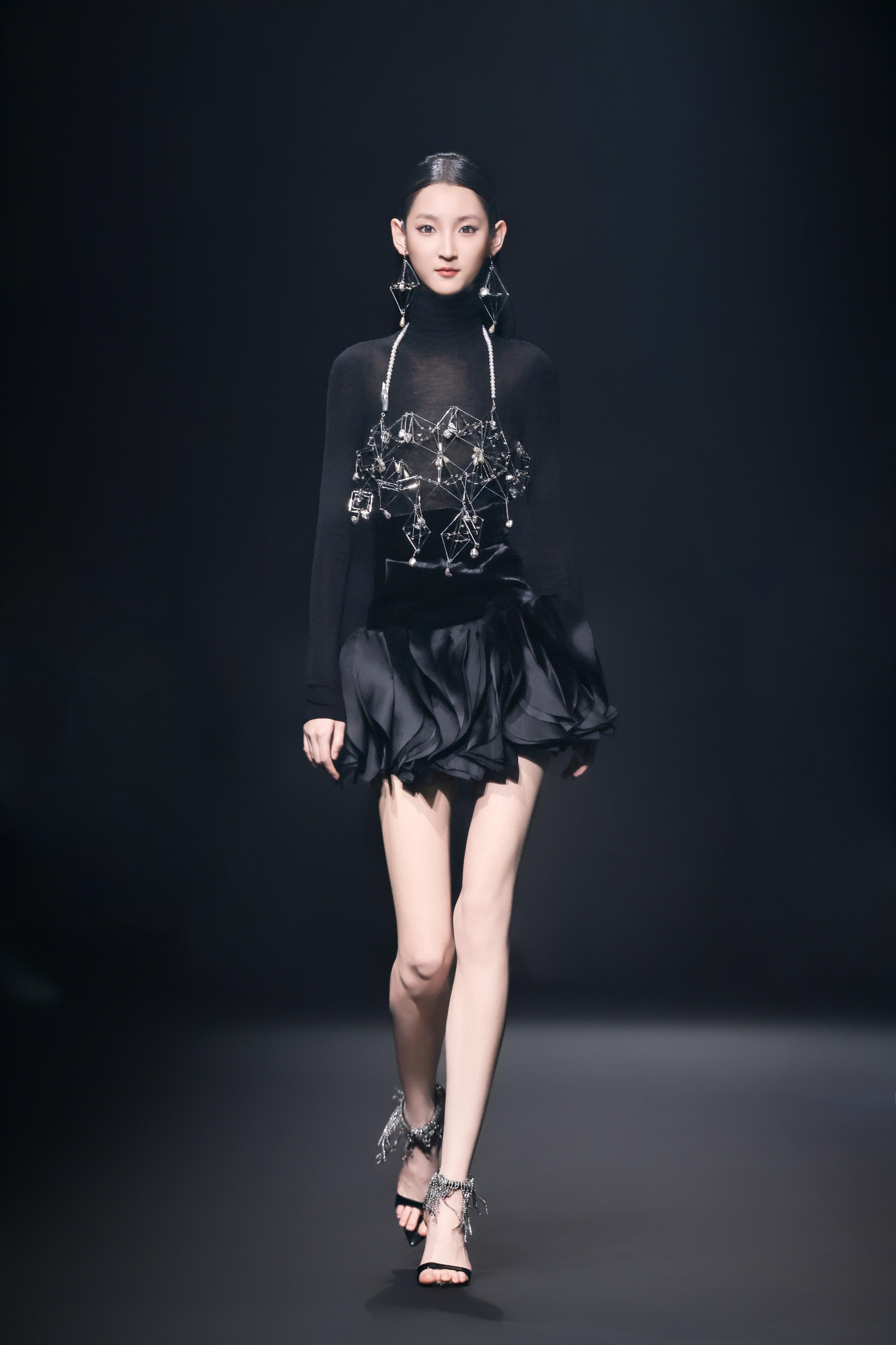 「缘起星辰」系列对东西传统手工艺进行了深度挖掘与现代重构。诸多法国高级时装中常见的技法被熔炼于具有女性主义气质和时代先锋理念的造型中,于方寸衣料间实现传统与现代的美学的对话,为现代独立女性注入文化自信与力量。