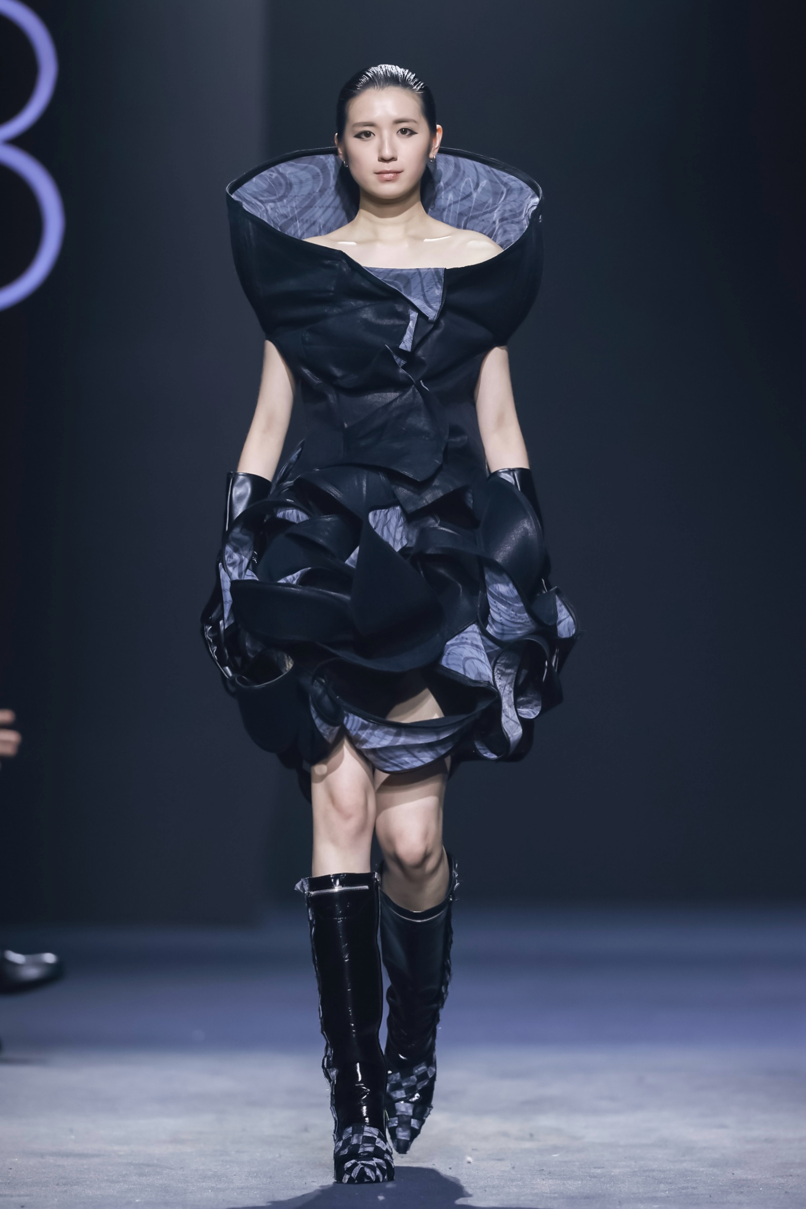 跳脱符号化刻板表达,以理性解构传统文脉,让千年底蕴与当代潮流、未来主义共生碰撞。于传承中突破,于融合中创新,赋予服饰哲学深度,让东方美学以更锐利的姿态站上世界时尚舞台。