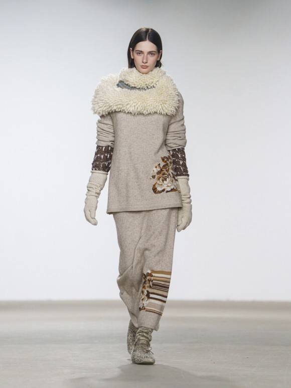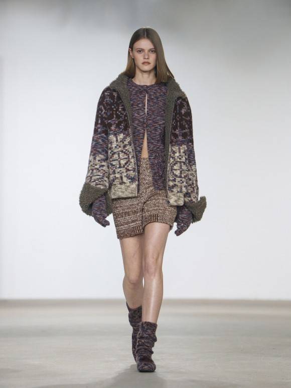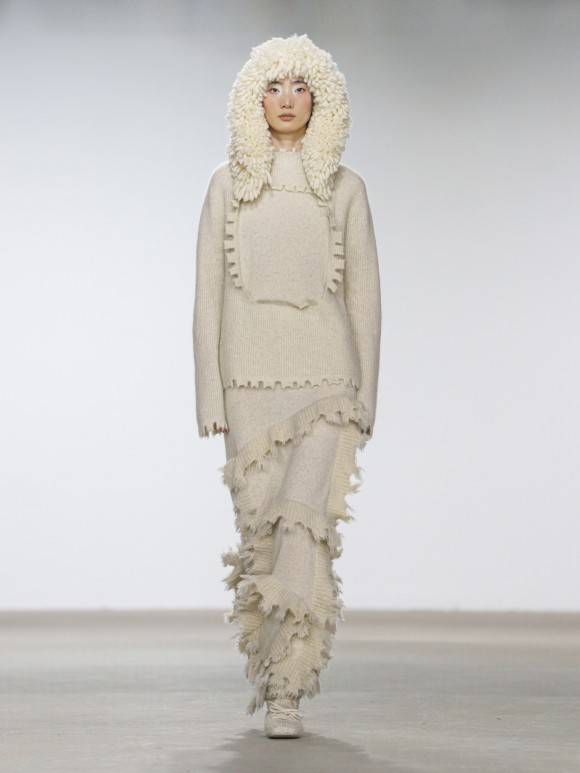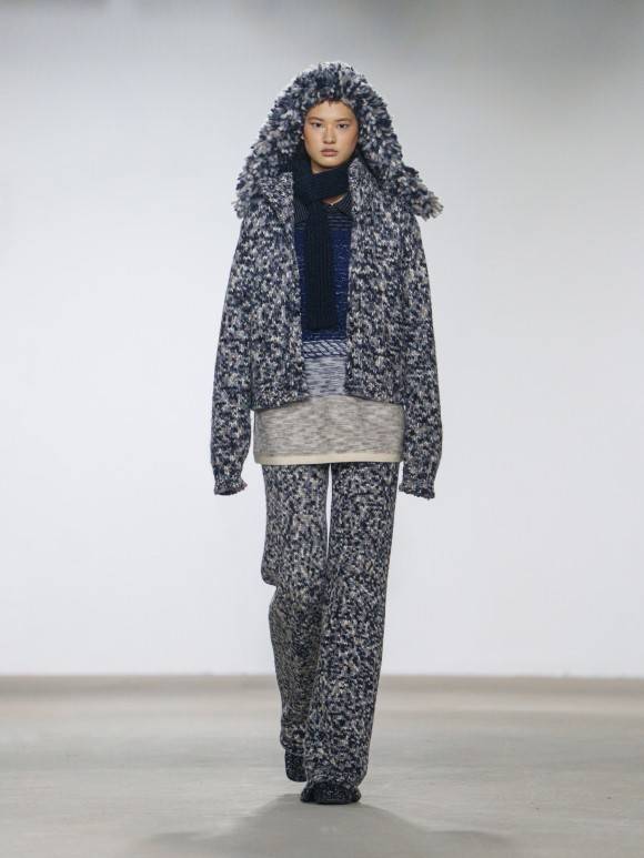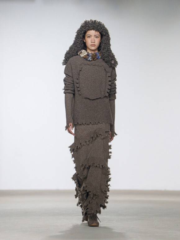 双重曝光的绞花叠印两种时空,丝光棉与粗纺纱在冲突中共生;