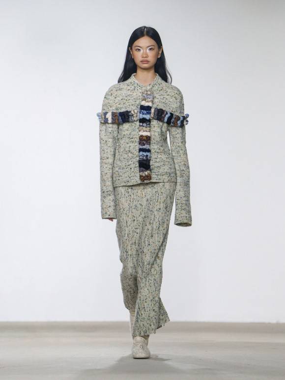 swaying源于设计师的面料设计背景,和对于触感的迷恋与细节的执着。通过视觉语言、不同材料的结合、针织结构的变化,有形地表达每次灵感下无形的感受和情绪,并重现品牌追随的温柔且坚韧的独立女性形象。品牌名称swaying既是knitting时候机器和身体的动作也代表着设计师在针织时的那种慵懒、惬意并享受的感觉,也是kniter对knitting的迷恋。