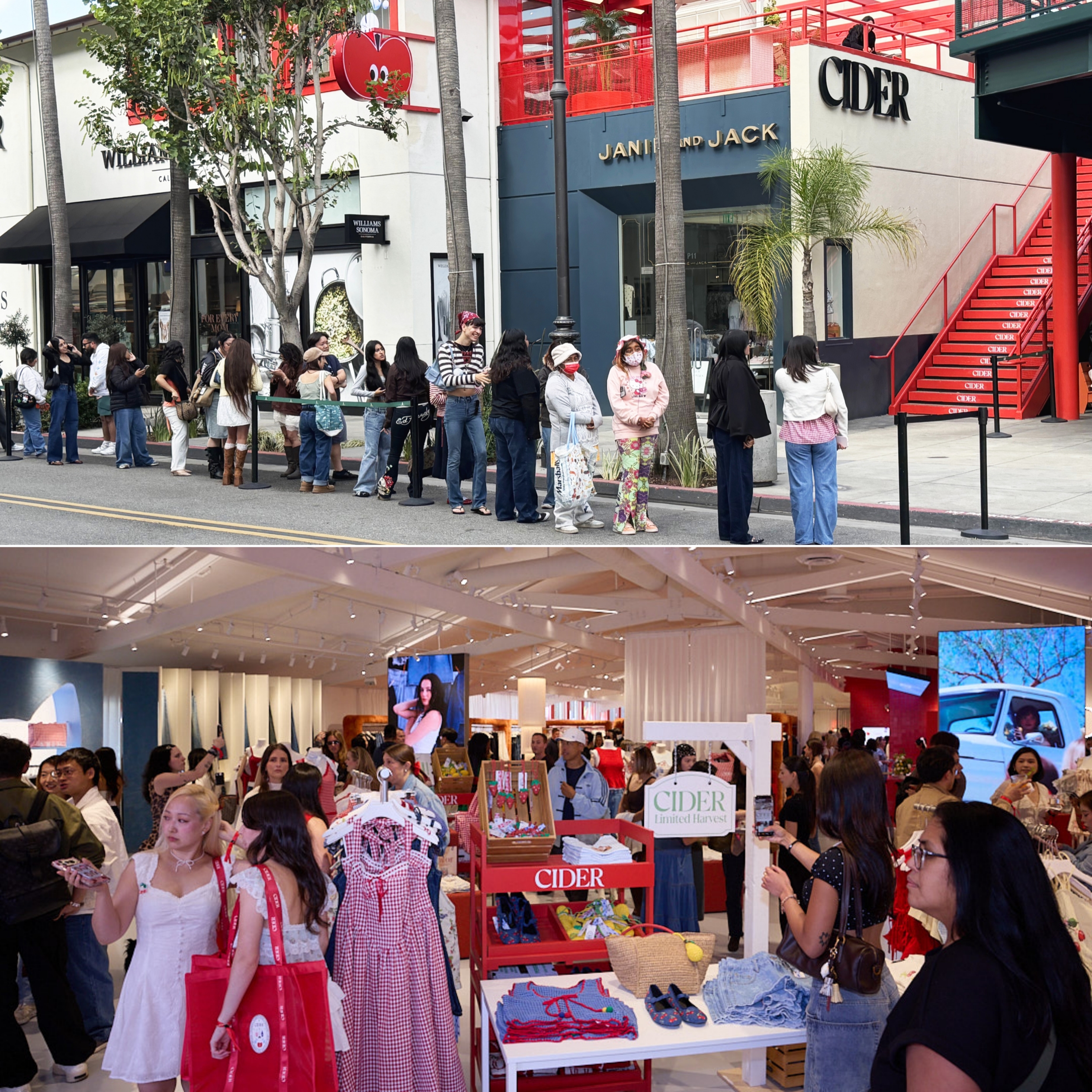 美国时间4月17日,洛杉矶百年市集The Original Farmers Market被一群年轻人的热情彻底点燃。时尚零售品牌CIDER全球首家线下常设门店刚刚开门营业,等候入场的队伍已蜿蜒绕过街区,社交媒体上的打卡分享迅速刷屏。
