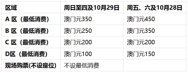 售票专柜:美狮美高梅及澳门美高梅(有关专柜之开放时间及详情,请参考官网)