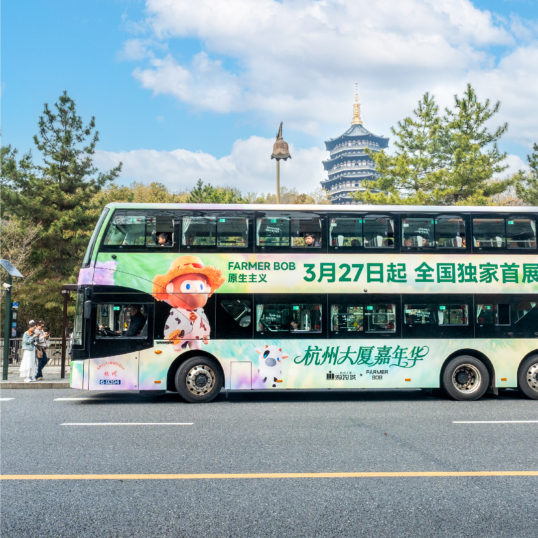 此外,3月27日至29日嘉年华期间,现场还将轮番上演数十场趣味互动活动:星愿点亮仪式、宠物友好派对、Farm Game套圈圈、惊喜盲盒机、萝卜空投记等潮玩互动惊喜不断,好玩出圈,让消费者在逛购之余,尽情解锁沉浸式玩趣体验,嗨享春日限定欢乐。与此同时,杭州大厦包下520路双层巴士,变身“FARMER BOB痛车”,成为街头巷尾的“话题焦点”。3月28日-29日,4月4日-5日,这趟免费接驳专线,载着春天,串联起这座城市最美的地标与风景。