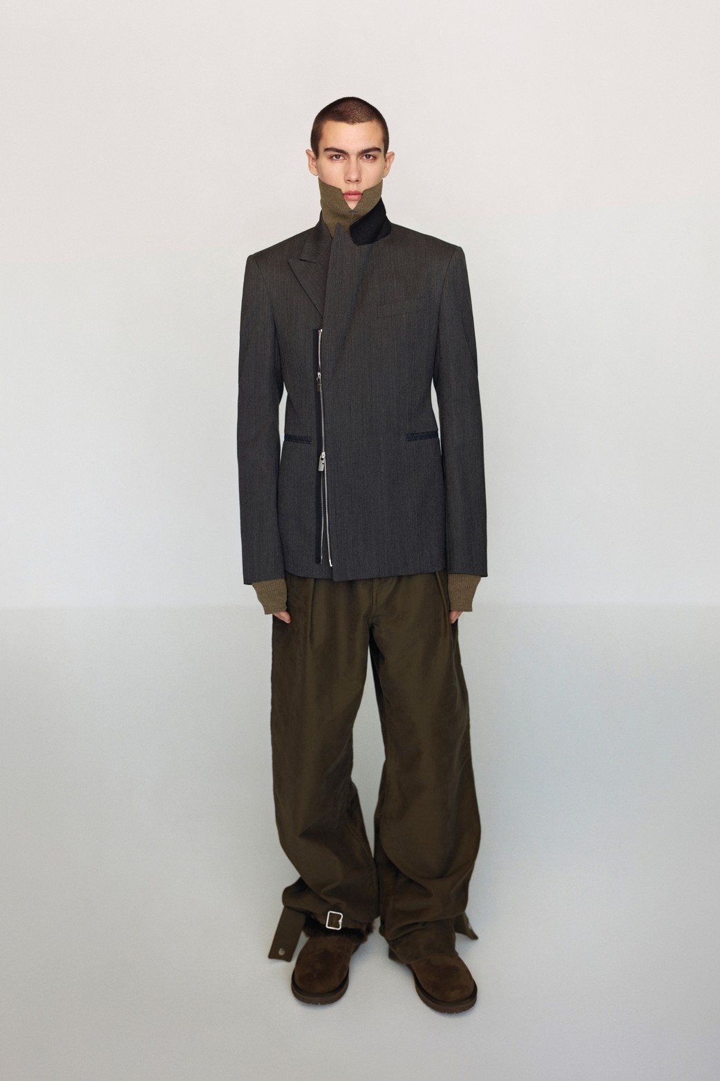 细节考究,令人眼前一亮。拉链既可用来调节褶饰半裙,也可替代双排扣大衣和量裁外套上的纽扣。 成衣染色棉质工装裤两侧采用按扣设计。Knight 包型被重新解构,创意装饰粒纹小牛皮迷你裙。