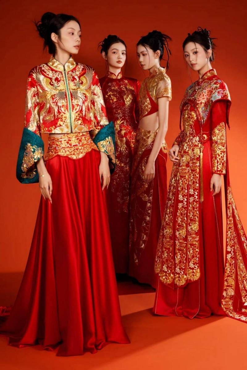 傍晚时分,发布秀徐徐展开。模特于T台之上缓缓穿行,设计师独特的审美将细致入微的非遗技艺融入每一件礼服的设计灵感中。斑驳色泽、绣作工艺、取自手作工艺与自然元素,重新解构演绎上衣下裳、凤冠霞帔等标志性中国新娘嫁衣。绘制中国人关于龙的想象与美好寓意,微妙渐变对比,共鸣着流动的诗意时光。