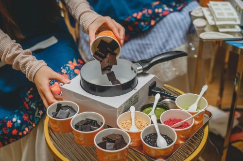 杭州,作为此次Venchi夏日寻味之旅的初始站,媒体好友、意见领袖及VIP客人皆受邀于杭州嘉里中心店铺内齐聚一堂。现场陈列着独具杭州风情的装饰品、艺术品、团扇及白蛇传相关衍生品等,让人深刻感受到强烈的当地文化。活动以品牌工作人员带领大家品鉴新品为序,在开设的手工作坊中特别提供了具有江南意蕴的巧克力模具,而作为“杭州代表“的龙井茶粉也在此作为调料供大家使用,微妙的巧克力香气与龙井淡雅的气息交融,在甜蜜中尽享这份意式夏日的美好。