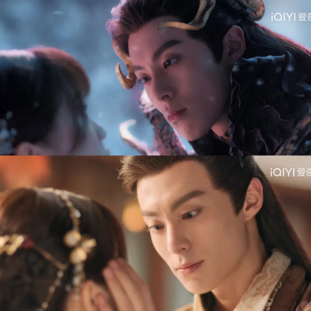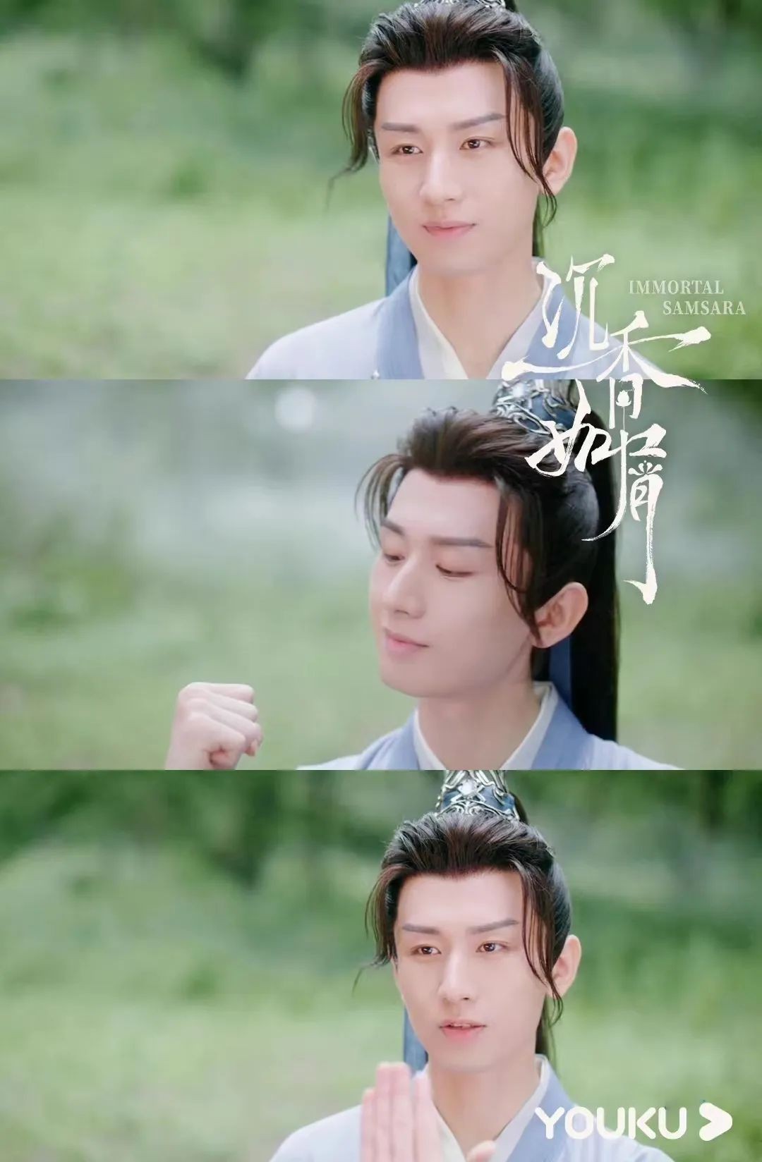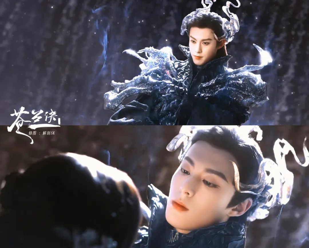 当一众古装美男已经难以在样貌上分出高下,于是多了一种比拼方式:美强惨。这个暑期也是一样,美强惨魔王欢聚一堂。剑眉星目、高鼻翘唇,很难在他们中做选择啊!这些英俊大男主可以选个吉日开个会,聊一聊各自追妻心得和美强惨道路上的心路历程。但会议的入门券,首先得是个——美男。蜀地美男王鹤棣被粉丝戏称为“猴系长相”。桃心长脸折叠度高,轮廓分明立体。颧骨位高带着点冷峻,鼻头圆润又中和了这种凌厉。整个中庭单看是人畜无害的小少爷,但是加上略凸的嘴唇又能秒变禁欲。月尊的眼不是眼,是熊熊业火下能完美击中到心巴的一把爱情剑。《苍兰诀》中的月尊妆造强化了王鹤棣的眼部特色。“三眼皮”吃眼妆,将眼影打在眼尾和眼下能有效拉长眼型,扩大眼部占比。眉尾和眼线走势一致,剑眉星目,睥睨众生。将眼影连接到鼻侧影,古装霸道男的邪魅尽显。玩火的时候唯我独尊,不玩火的时候冷眼对人,睥睨众生。好吗,怎么都是你赢。能在眼睛玩森林冰火人的月尊,兰花草难采,但是收割芳芳草地是绰绰有余。
