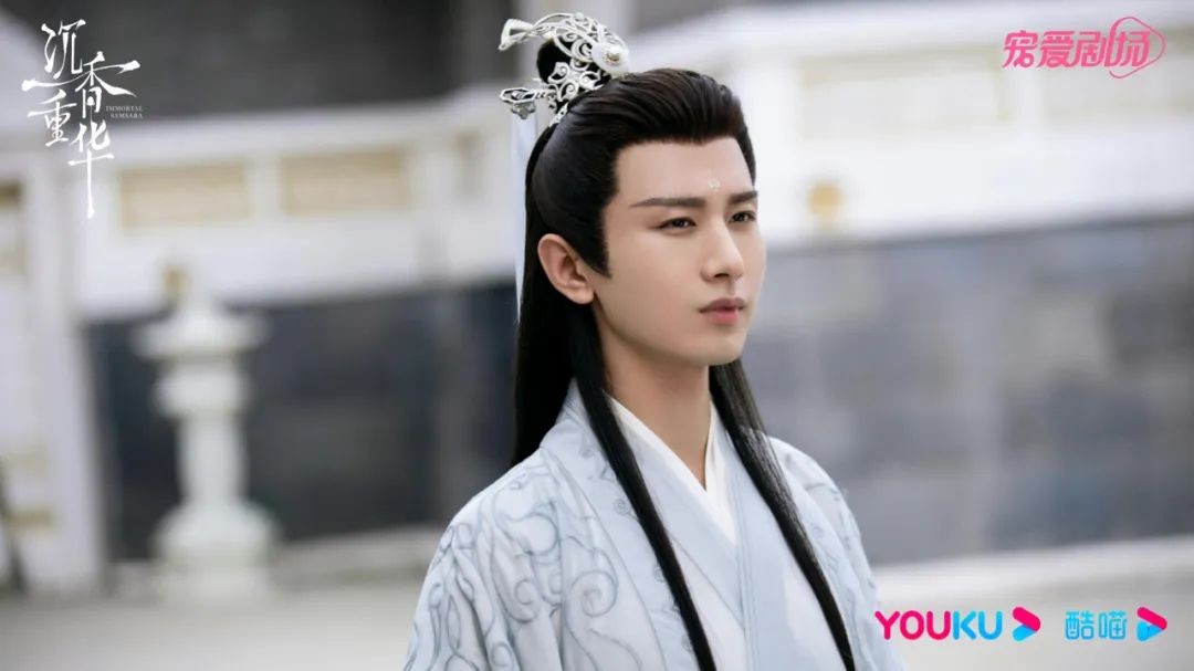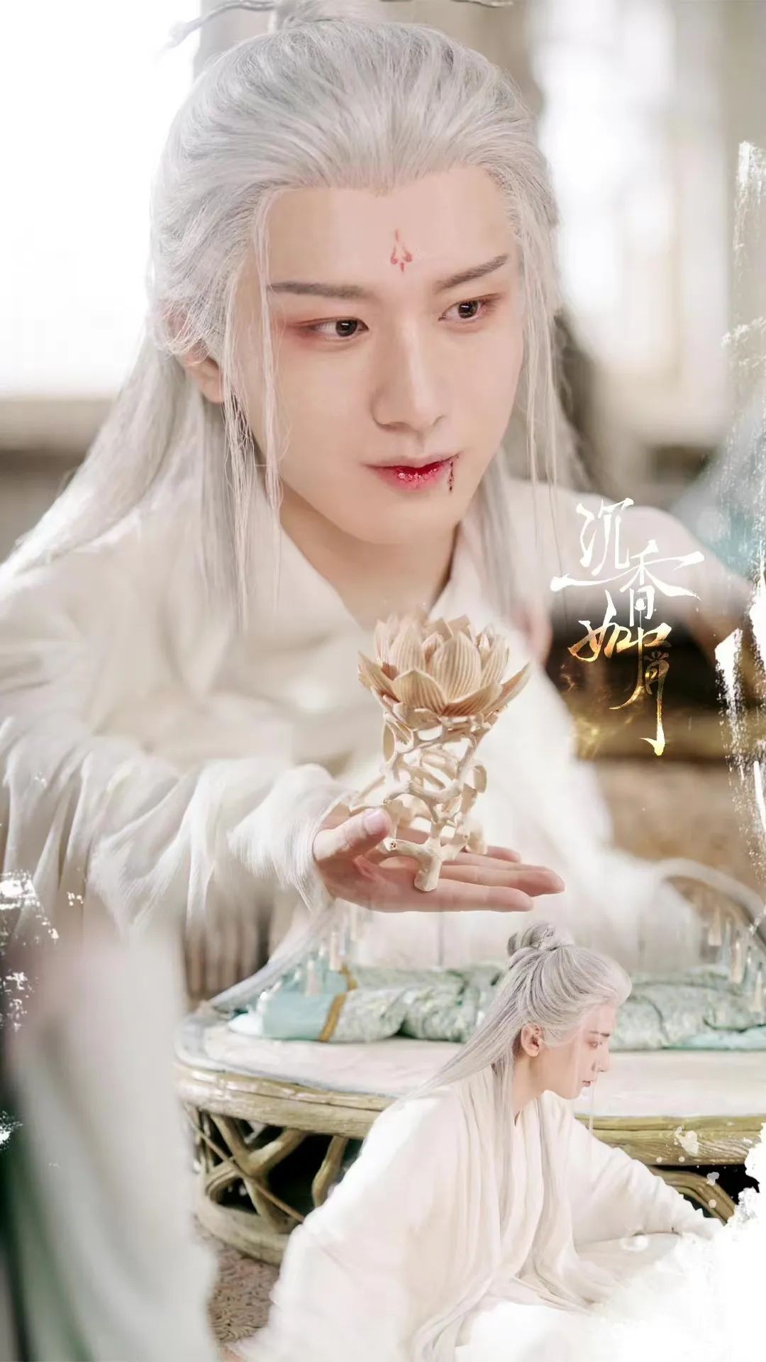 《陈情令》当中魏无羡自带的少年感,初看总觉得“夷陵老祖”这个鬼道创始人不太沾边。肖战的开扇型桃花眼和卧蚕一脸人畜无害,剧中走势平稳的剑眉在武生当中带点书生气。上唇微翘,不笑是画中人,笑起来是心上人。别家黑化是化个小烟熏,而魏无羡黑化则是来个小惨白。整体妆容的饱和度减弱,红色的下眼影塑造欲泣的双眸,在一身黑红的映衬下突出脸色的惨白。美强惨的鼻祖不需要过多的妆容修饰,只需一个眼神,似笑非笑的破碎就能构成美殇。“魏无羡分明是一个神采飞扬、明俊逼人的少年,眼角眉梢尽是笑意,从来不肯好好走路。而这个人,周身笼罩着一股冷冽的阴郁之气,俊美却苍白,笑意中尽是森然。”不用妆造老师操心的男明星不多。但成为仙侠男idol的合格证,还有一种长相叫可塑性。只要能造,《青云志》中平平无奇的青云门弟子也能变成《沉香如屑》中的天帝外甥。成毅的五官很有特色。嘴巴偏小,下唇饱满,带着点古典味儿的清俊和稚气。宽眼皮和眼尾略向下的眼型给他增添了一丝忧郁,鼻形优秀,侧脸绝佳。而在《沉香如屑》当中,妆容给他带来的是“仙气”和“侠情”。应渊的一头银发衬出了成毅的奶白肤色,红调的眼影和唇妆在颜色对比下更突出,眉心的花钿和眼妆唇妆互相映衬,展现上神的高冷孤僻。褪去仙骨落入凡间之后的唐周,黑色长发和几缕刘海带着侠士的飒爽,再加上内眼线和眉毛的细长,使得眼部的优点被放大,整个面部也修饰的更加立体。 而战损妆一出,侧影带来的明度对比强化了他自身的阴郁,眼神与伤痕,是少将的不甘和不羁。