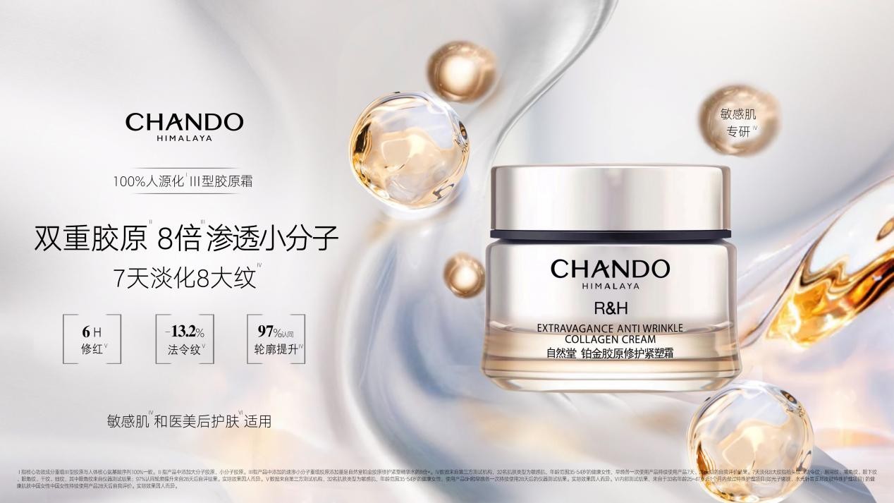 9月,继自然堂极地精华露上新后,自然堂紧接着重磅推出了为「敏肌抗老」而生的自然堂胶原霜,以100%人源化III型胶原蛋白为核心成分,以双重胶原搭配超极酵母喜默因,实现外修屏障、内补胶原、倍促新生三重作用,有效解决敏肌 “想要抗老又怕成分刺激、太温和又怕没效果”的难题,让修敏、抗老双向发车,开创修愈式抗老的全新路径。