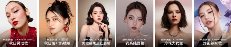 此外,京东还联合纪梵希、阿玛尼、玫珂菲、3CE、橘朵、M.A.C、美宝莲等品牌,分别打造“白开水妆容”、“秋日灵动妆”、“秋日落叶奶橘妆”、“美拉德焦点红唇妆”、“钓系纯野妆”、“冷艳大女主”妆、“炸街辣妹妆”等多元、时尚妆容,全面满足消费者的个性化需求。