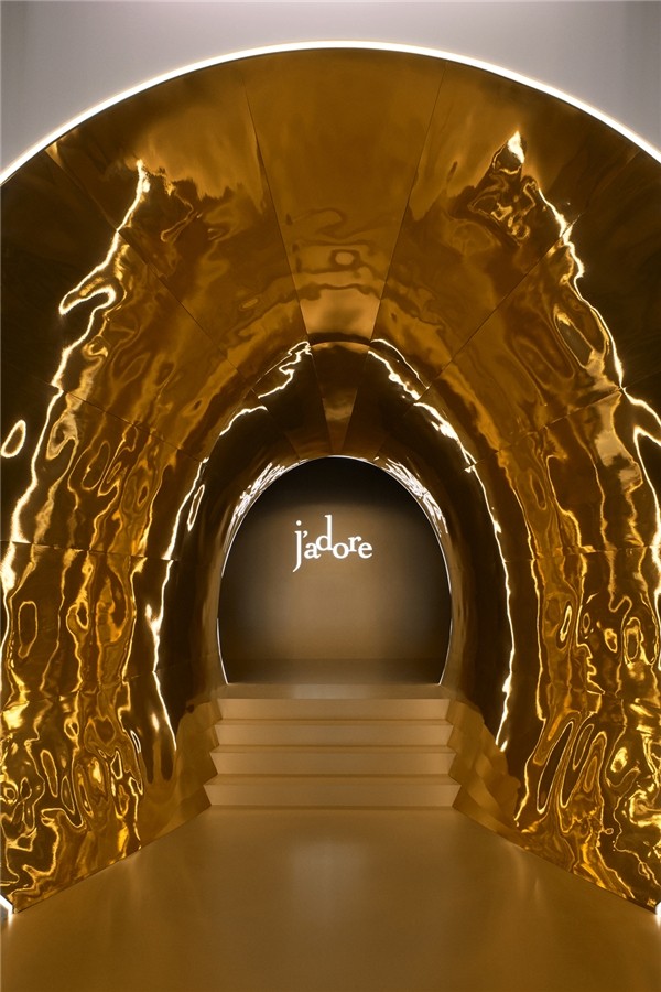 走进展馆,仿佛步入真我香水的芬芳殿堂。一道金色长廊,宛如轻绕香水瓶颈的奢美金饰,引导参观者深入探索这位坦诚真切的设计师的内心世界。目光所及,皆是Christian Dior迪奥先生的挚爱珍宝,他对幸福家园的美好回忆,以及对古希腊罗马艺术的热爱。