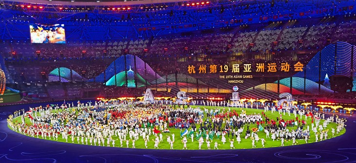 在亚运的闭幕式中,唯一的舞蹈节目《荷桂共生辉》,在寒露时间演绎了荷花与金桂交接共生的美。“荷桂少女”与“露珠少女”共舞,从演出者发髻中的水韵,妆面中的色彩,到手臂与鬓角处的波纹,以水闻名的江南带着亚细亚的文化,因此流动在了这场盛会的尾声。