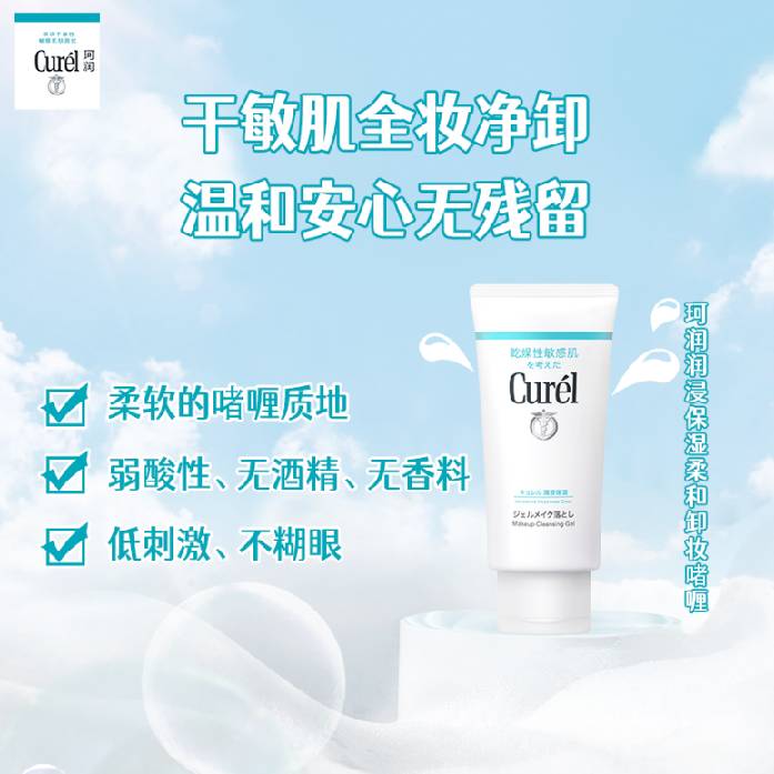 干敏星人的肌肤经常爆发小情绪,外加带妆一整天,如果卸妆不到位将进一步加重肌肤问题,挑选卸妆产品更需谨慎。珂润润浸保湿柔和卸妆啫喱,啫喱质地清爽不粘腻,遇水即乳化,能够迅速渗透到肌肤,有效卸除彩妆和污垢。弱酸性、不含酒精、不含香料配方,不给肌肤增添负担,敏感肌也能安心使用。