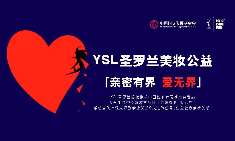 2020年,YSL圣罗兰美妆发起 “Abuse is Not Love”(亲密有界 爱无界)全球公益项目,自2021年起进入中国,YSL圣罗兰美妆携手中国妇女发展基金会,并委托中国科学院心理研究所心理健康应用中心提供技术支持,发起大学生公益教育项目「亲密有界 爱无界」。