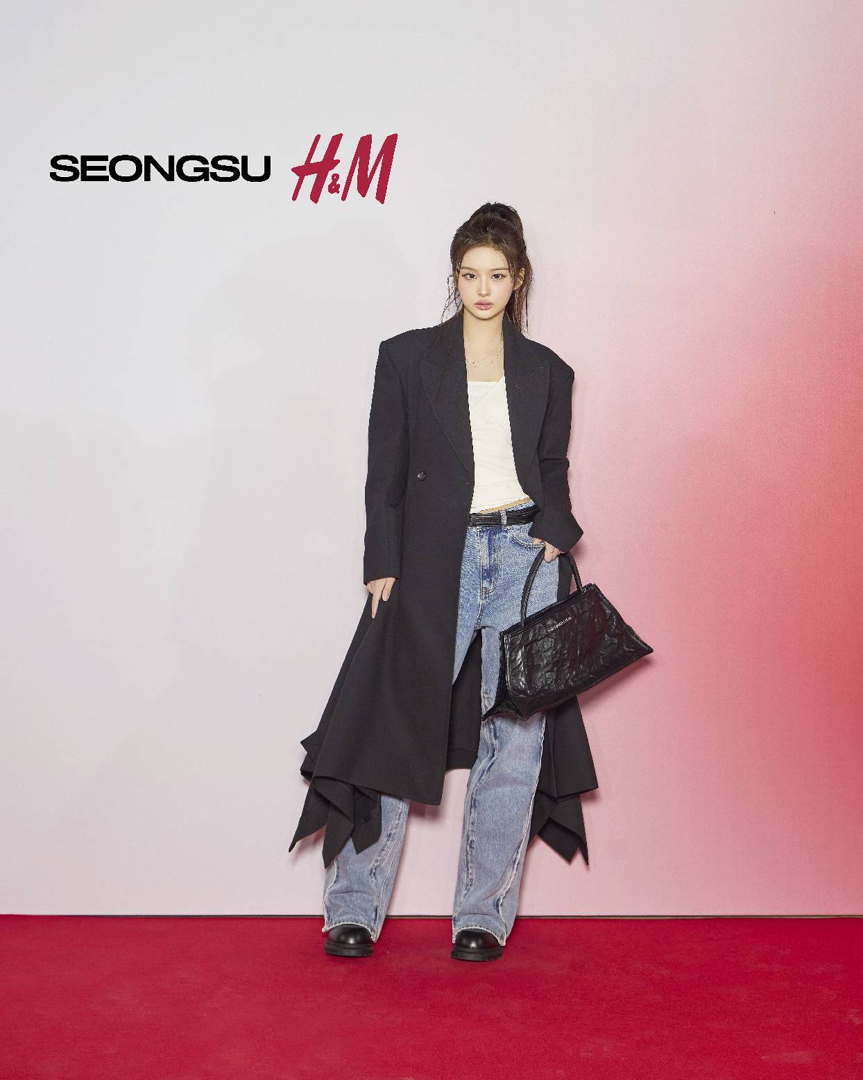 开幕当晚,创意力量与时尚爱好者们齐聚一堂,在音乐与光影交错的氛围中,共同感受Glenn Martens H&M设计师合作系列的启幕时刻。韩国人气偶像团体IVE成员Gaeul(金秋天)身着海军蓝编织针织开衫,搭配以不对称下摆与高开衩设计重塑的牛仔裙,于经典与先锋间展现独特层次感;NMIXX成员Sullyoon(雪允)以极具个人辨识度的造型亮相,将修长黑色大衣叠搭个性背心和可调节式丹宁裤,配以厚底靴和系列标志性单品Lava手袋,在街头率性与摩登格调间自如切换;人气歌手Chung Ha(金请夏)以细带上衣搭配拼色牛仔裤,简约中注入张力与自信;于此同时,韩国女团ILLIT成员Yunah(卢玧我)以灰色印花连帽衫叠穿罗纹针织连衣裙与立体剪裁外套,并搭配高筒长靴,在层次混搭中展现新生代个性自由的时尚态度。