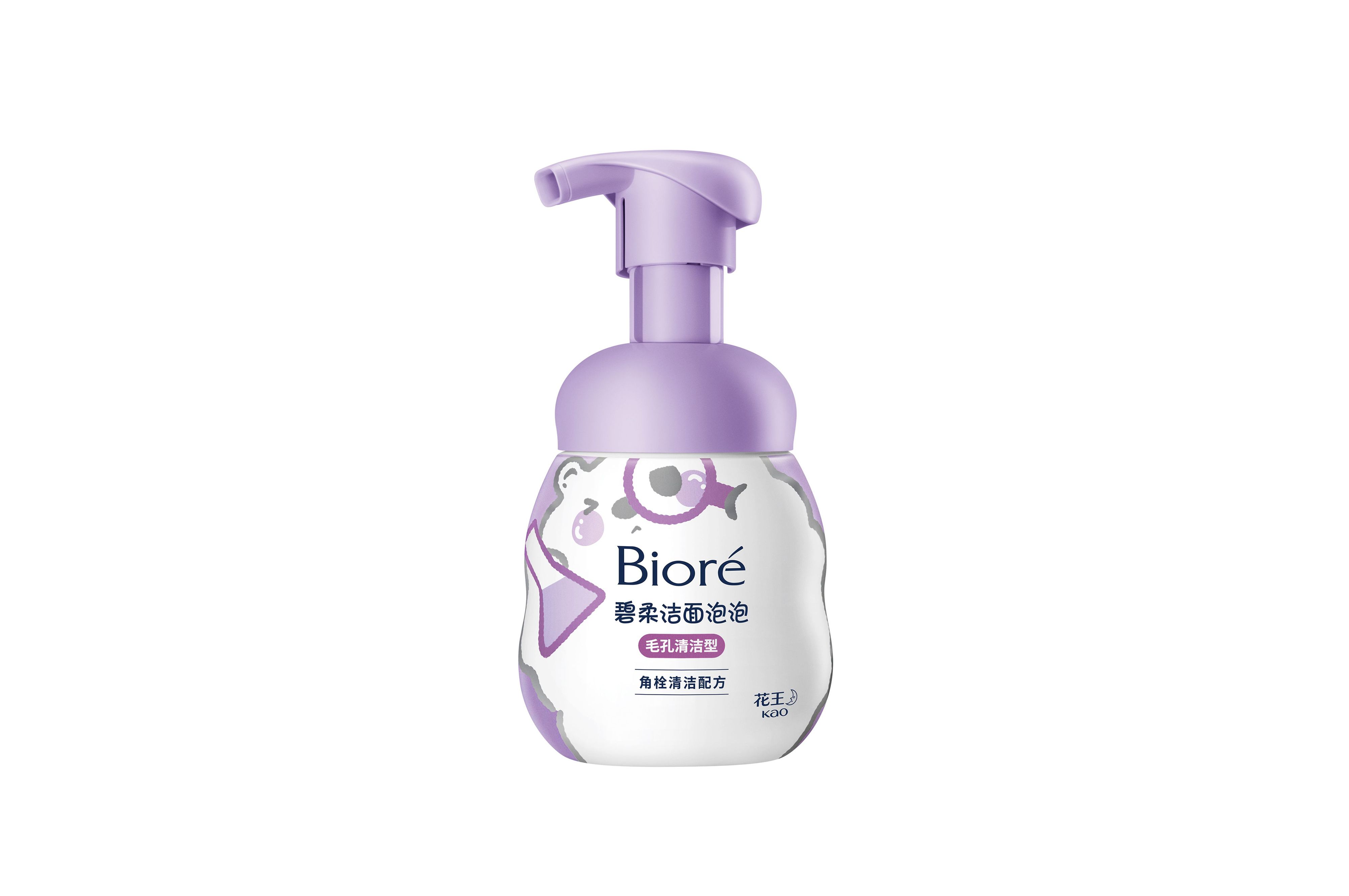 “碧柔洁面泡泡(毛孔清洁型)”包装采用梦幻紫色和白色的温柔色系,与萌趣可爱的“毛孔熊”形象搭配惹人喜爱。每次洁面时,按压出丰盈泡沫,均匀涂抹在脸上并轻轻按摩,即可在轻松净澈毛孔的同时感受“碧柔”治愈系洁面体验,在“毛孔熊”的绵密怀抱里“净”透每一天。