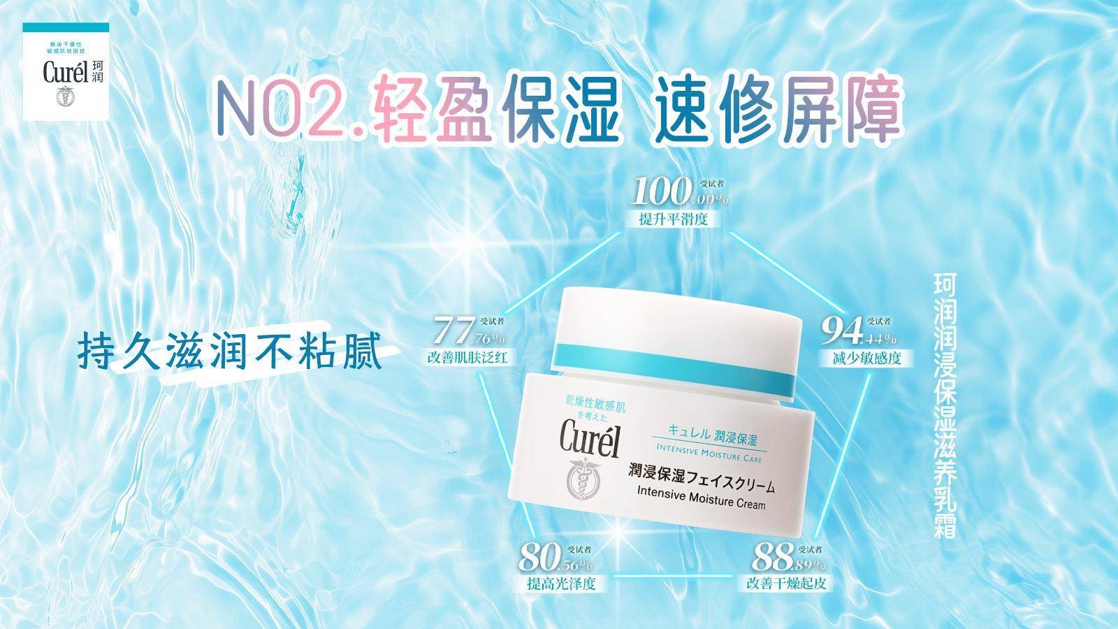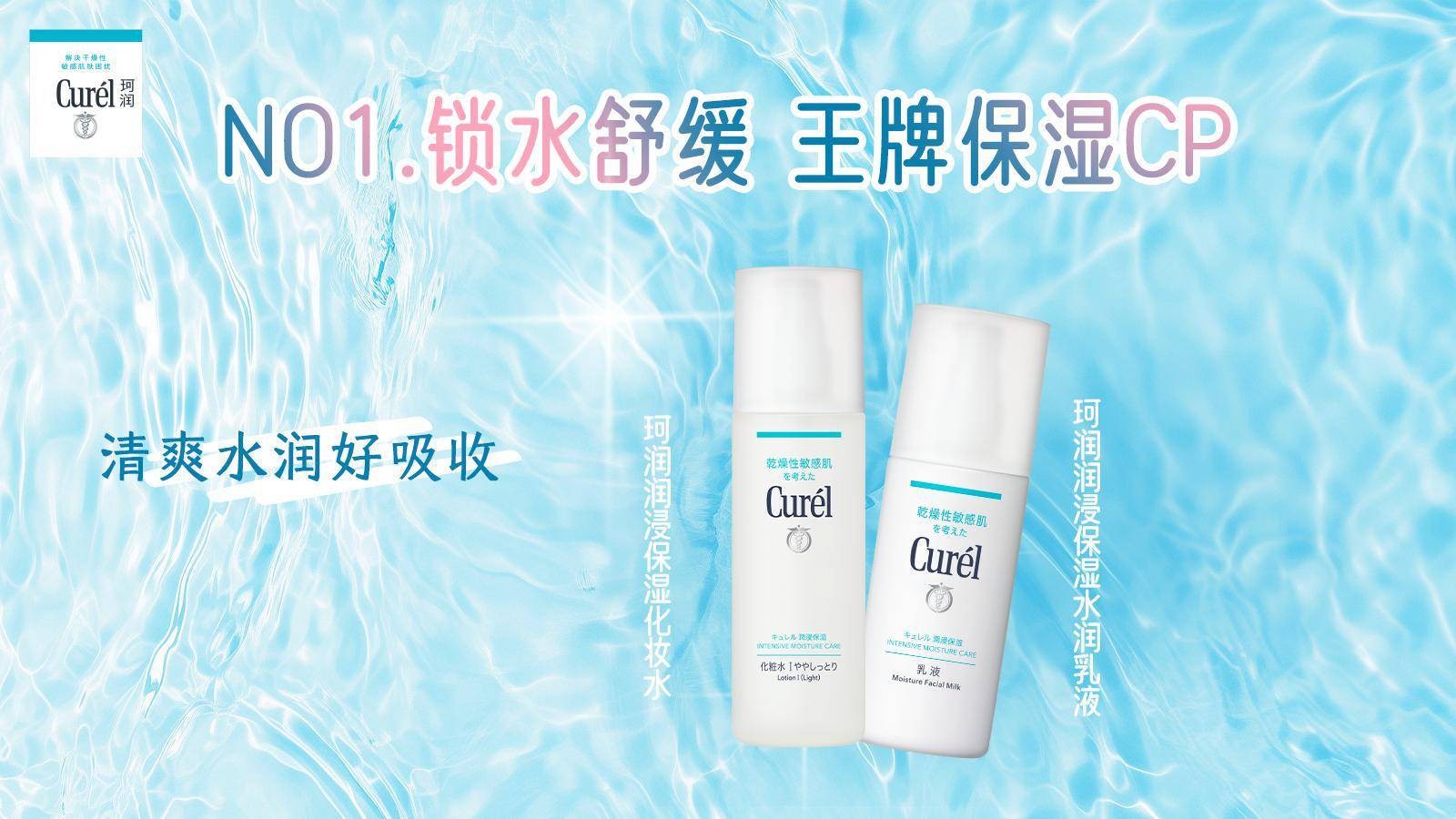 Curél珂润 “高人气保湿CP”——珂润润浸保湿化妆水和水润乳液,轻松两步完成补水加锁水,为肌肤提供持续滋润。