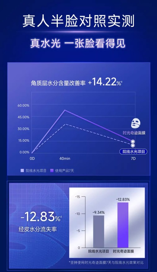 第三方测试数据为功效提供了实证:受试者使用该产品后,肌肤水润度\弹性以及面部紧致度都有显著的改善效果,验证了其 “7日等效水光” 的护理实力。它不仅适用于寻求高效抗衰的熟龄肌,更是敏感肌、医美术后等脆弱时期的安心之选。