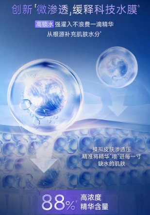 区别于传统面膜精华浮于表面、吸收低效的状况,维诗朵依托于水凝胶材料与膜体制备的核心发明专利,创新性地开发出微渗透缓释科技。专利水凝胶膜体如同一个“固态精华库”,能锁住高达88%的高浓度活性物。敷上脸后,它能模拟皮肤渗透压,形成微压动力,将组分占比高达98%的超小分子透明质酸(<10k Da)等活性成分持续、定向地“推”入肌底,直达真皮层,促进自身玻尿酸&胶原蛋白再生。