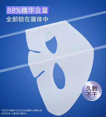 同时,基于 “妆械同源” 理念的专利制备工艺,采用高能电子束交联技术,无需化学交联剂,杜绝化学残留风险,生物相容性更佳。结合符合人脸工学的3D立体弹力网格剪裁,面膜能如“第二层皮肤”般贴合各种脸型,实现久敷不滑落、不滴液,确保每一滴精华都被有效利用。