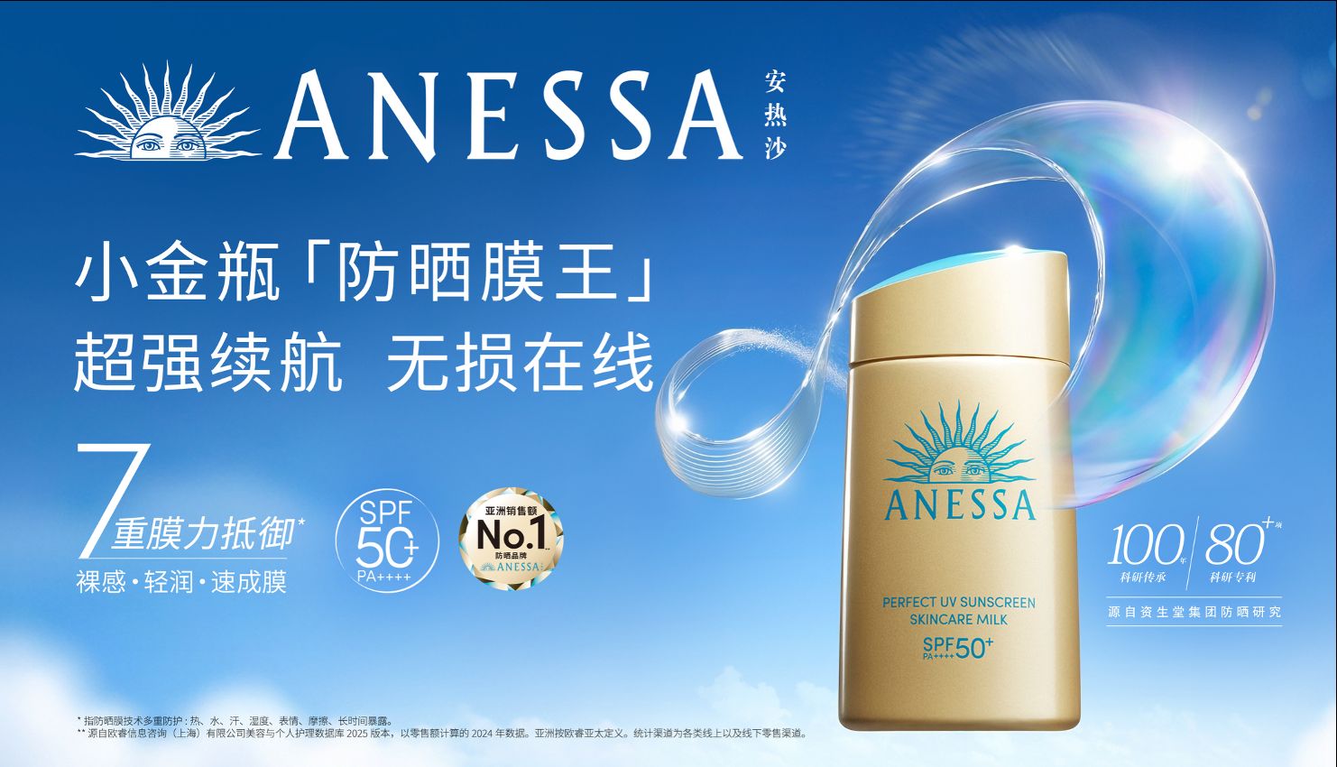 在防晒领域,安热沙不仅是市场的开拓者,更是技术的定义者。品牌拥有多项独有专利技术,并持续将资生堂集团前沿科研成果转化为可感知的防晒体验。去年推出的革新之作——明星产品「防晒膜王」小金瓶,即为品牌科研实力的集中体现。打破传统小金瓶防晒的固有印象,全新小金瓶在肤感上实现了显著升级,带来更加轻薄的上脸体验,上市后便广受消费者好评。其搭载的Auto Repair Technology自动修复技术与Auto Booster Technology自动感应增强技术,真正实现了防晒膜的“智能应变”,率先进入新防晒科技时代。