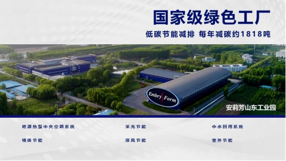 党的二十届三中全会及后续国家战略规划中,多次强调要聚焦建设美丽中国,加快经济社会发展全面绿色转型。安莉芳山东工业园作为国家级绿色工厂,多年来坚持低碳节能减排,每年减碳约1818吨,并通过地源热泵、中水回用系统等举措,实现了生产、消费、处理的全生态闭环。