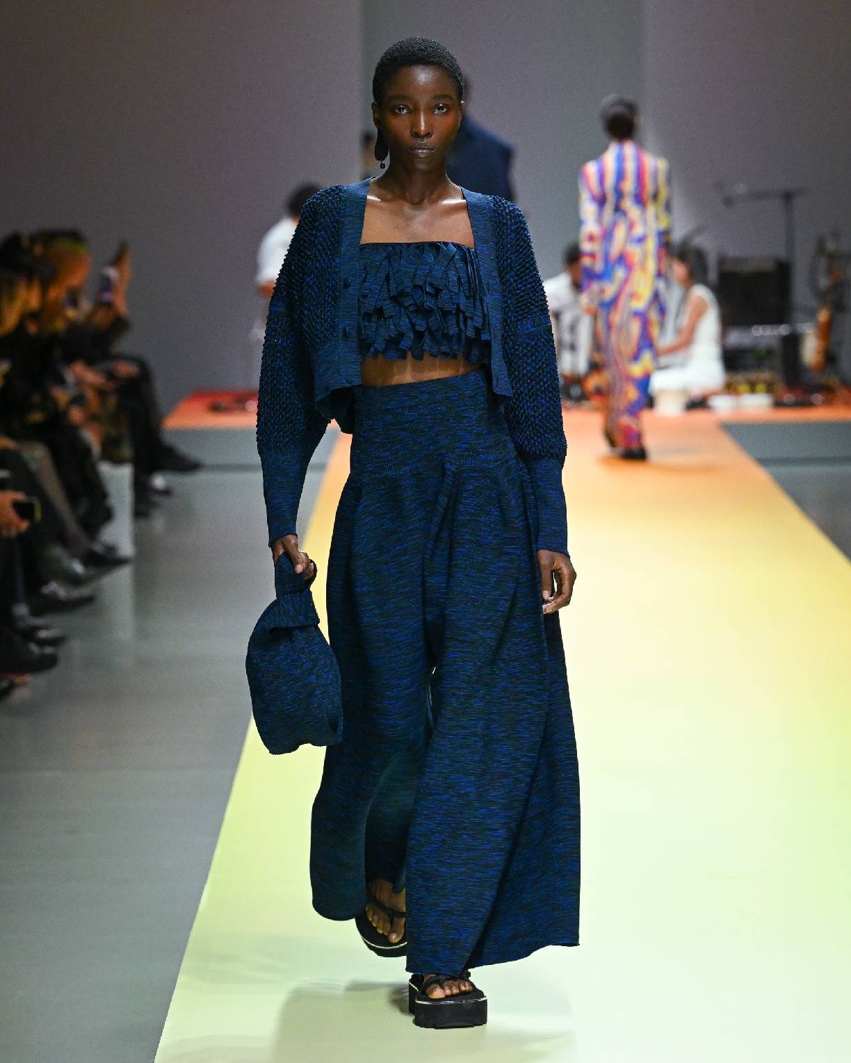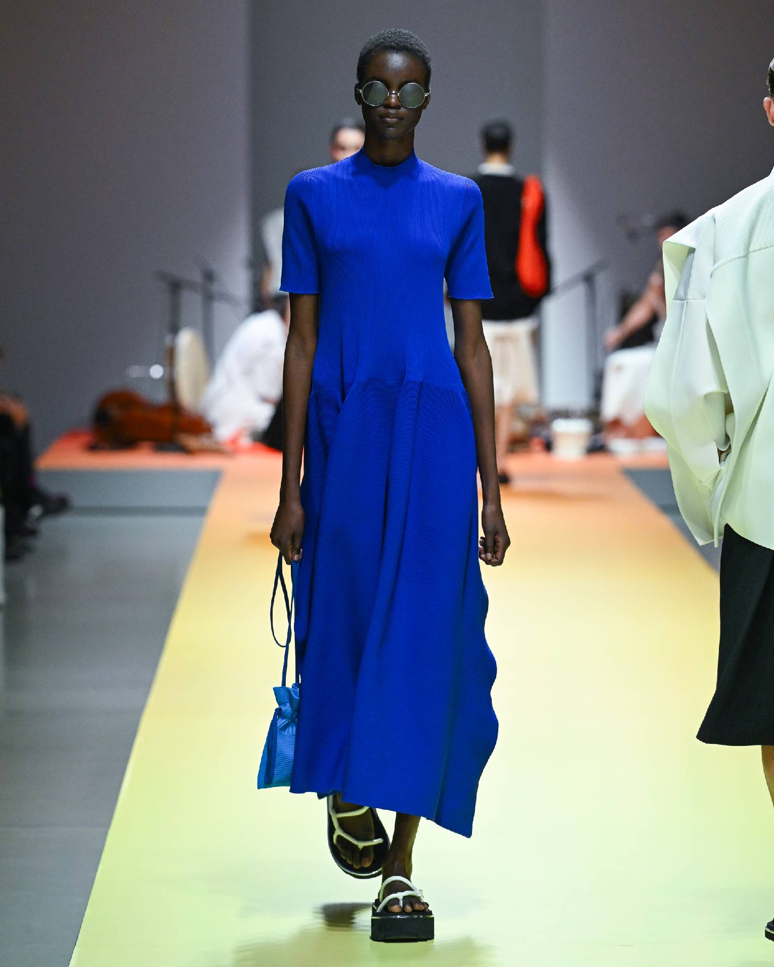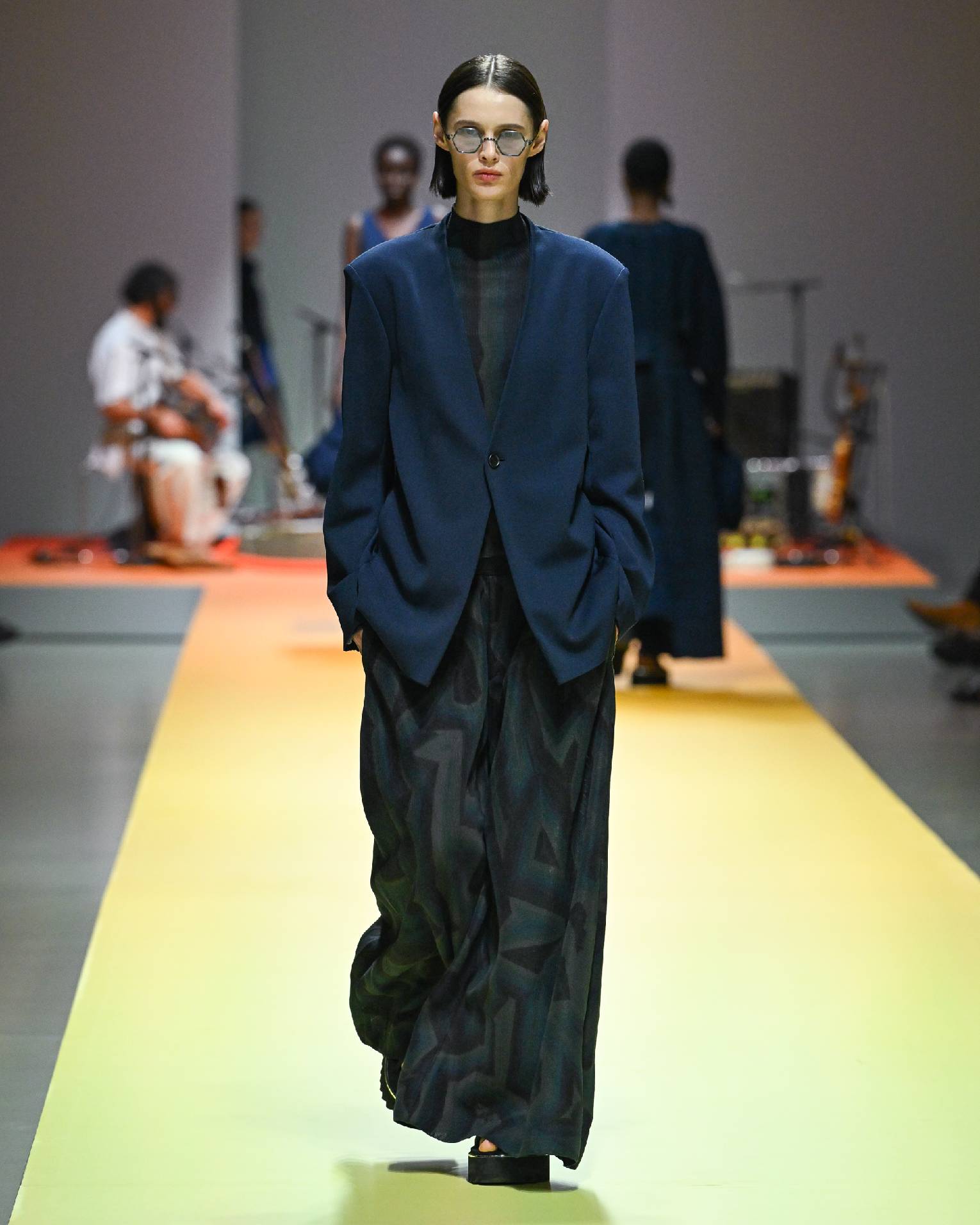 (法国,巴黎)9 ⽉ 23 ⽇,星期一,2025 春夏巴黎女装周的首日,CFCL 在东京宫(Palais de Tokyo)的 “Saut du Loup”空间呈现了自 2022 年加入官方日程以来的第二场时装秀。秀场以富有活力的渐变维他命橙色覆盖,萦 绕着斯洛文尼亚实验器乐组合 Širom 的民族与现代音乐。融合了二维与三维的传统技艺与尖端科技的丰富单品 ,在此展现了一种与未来世界无缝连接的美好愿景。