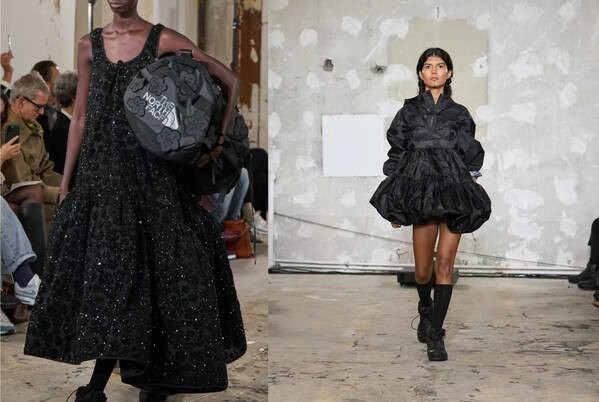 北面作为在专业户外领域和时装行业兼具影响力的品牌,也重新思考了合作高级时装品牌的战略意义。与 Cecilie Bahnsen 的合作并非北面首度涉足高级时装,从早前与 Sacai 和 GUCCI,到近年的Comme des Garcons (CDG) 和 MM6,北面多次合作先锋时装品牌,尝试以户外运动视角融合高级时装精神。在早年的合作中,品牌追求更多的是一种 "契合" 及风格的和谐交融,彼时的北面亦站在户外与时装的交汇前沿地带。人们也能相对明显地感受到北面与这些品牌的共通之处,以及这些品牌在泛潮流圈以及其重叠受众中的号召力。