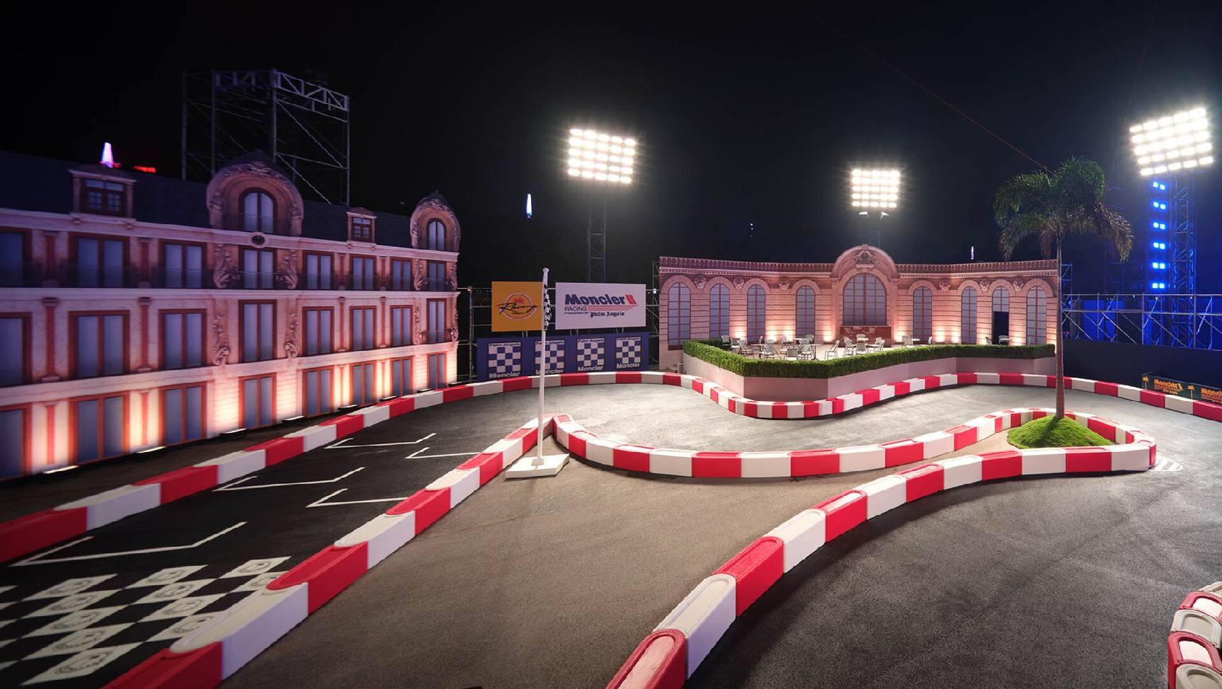 这处空间宛如电影般的梦境,怀旧气息与澎湃激情浪漫交织,灵感源自赛车运动的速度与魅力。棕榈树围场的卡丁车赛道再现引擎的轰鸣声与橡胶的燃烧气味,同时融入好莱坞电影极具张力的画面质感,还原七十年代赛车竞技激动人心的炽热氛围。宾客可于赛道旁落座围观,见证壮观的赛车盛宴;少数宾客将受邀驾驶卡丁车,亲身体验紧张刺激的赛车竞技。