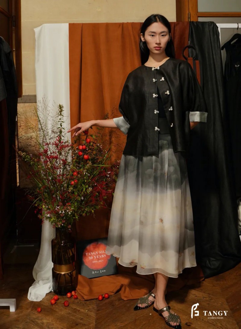TANGY Collection作为高端可持续时尚品牌的典范,其发展历程充分体现了创始人梁子对环保与时尚结合的前瞻性思考与实践。“金顶奖”得主梁子女士自1994年创立天意TANGY品牌以来,不仅发现了茛绸这一拥有两千年历史的植物染丝绸的时尚潜力,更是在2008年创立了TANGY Collection,将这一独特材料融入设计,打造出具有东方韵味且注重可持续性的男女装系列。梁子的设计理念强调人性化、跨越年龄界限、经典不过时以及追求零废弃,这不仅是对时尚趋势的挑战,更是对环境保护责任的承担。使用纯天然丝绸茛绸作为原材料,不仅减少了化学染料的使用,还通过创新设计赋予传统材料新的生命力,展现了中国传统文化与现代审美的完美融合。2019年,TANGY Collection在巴黎开设的“莨之家”莨绸生态时尚体验空间,进一步向世界展示了中国可持续时尚的魅力。