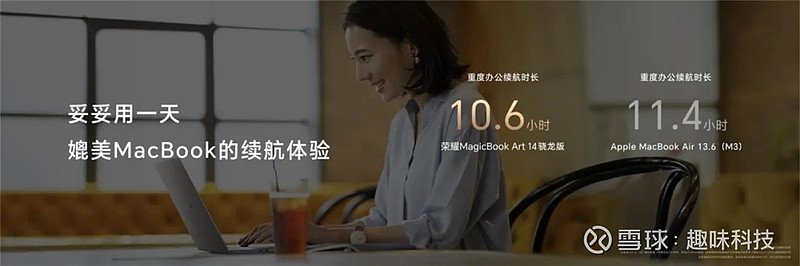 在续航方面,荣耀MagicBook Art 14 骁龙版配备了一块容量为60Wh的异构电池,结合荣耀自研OS Turbo 3.0技术以及智能硬件省电技术,在芯片资源精细化调度、系统资源精细化调度技术等手段的支撑下,实现了10.6小时的持久续航,满足用户全天高强度办公使用需求。