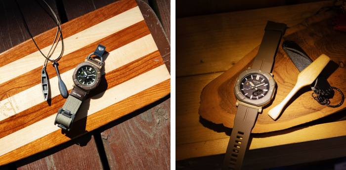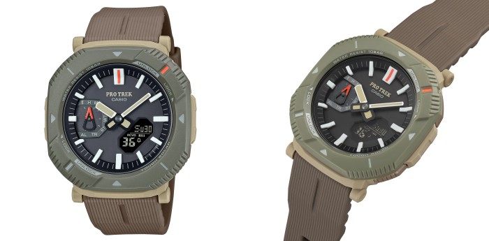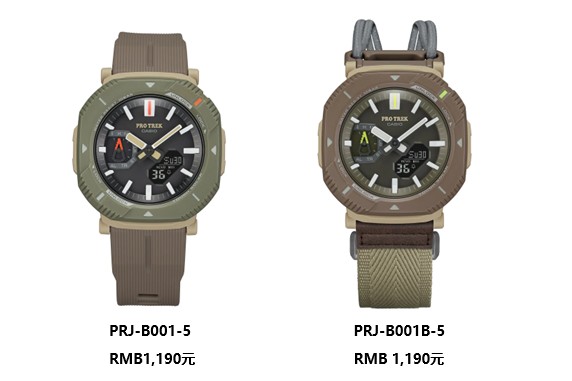 PRJ-B001-5和PRJ-B001B-5腕表,运用经典的山系风配色,棕色与黄色,轻松打造秋冬高级时尚感,橄榄绿则将自然随性的山野气息,带入到城市日常生活。