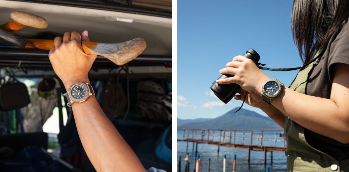 “山系风”的核心,是兼顾舒适和轻便的户外属性,同时很好的融入都市生活。PRJ-B001-5腕表,八边形造型的表圈,设计成了可旋转模式,“日常使用模式”下,腕表的按钮可以隐藏起来,防止走路、运动和工作中,意外触碰到。表壳和表带主要采用生物基树脂制造,可减少对环境的负担。整表仅44g,佩戴感轻便、舒适。