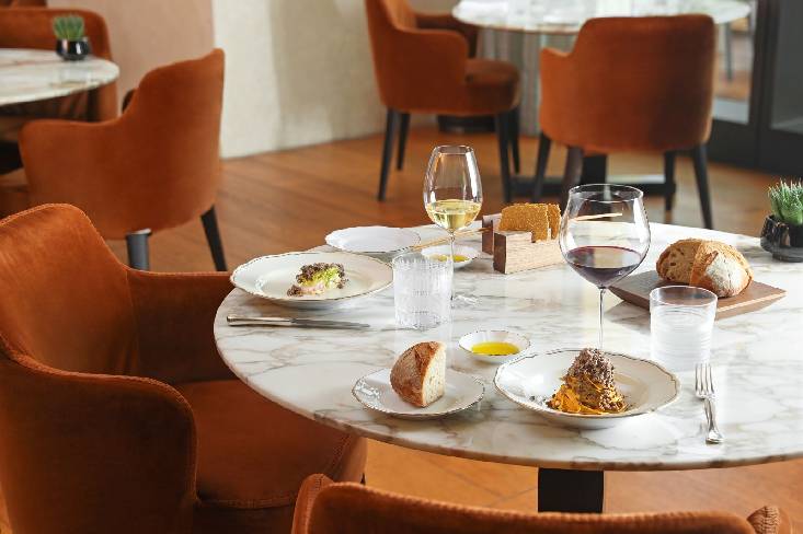 秉承意式烹饪精髓,黑松露臻选菜单的每道菜品都将珍贵浓郁的黑松露融入其中,呈现出醇厚香浓的味觉体验。烤深海鳌虾配辣土豆泥及黑松露,是一道令人惊艳的开胃佳肴。鲜嫩多汁的深海鳌虾与香辣土豆泥的浓郁口感相互交织,再搭配上细碎的黑松露,荟集海陆精粹,每一口都散发着迷人的香气,令人垂涎欲滴。