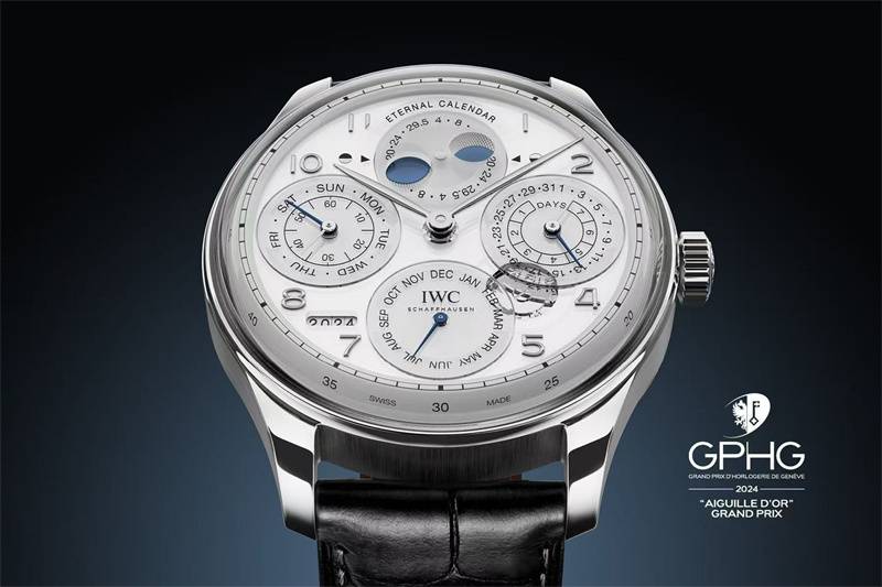 2024年11月13日,沙夫豪森/日内瓦 —— 沙夫豪森 IWC万国表葡萄牙系列永恒历腕表荣获第 24 届日内瓦高级钟表大赏GPHG最高奖项金指针奖(Aiguille d’Or)。IWC葡萄牙系列永恒历腕表于今年年初正式推出,是IWC万国表首款世纪万年历腕表。全新设计的以400年为单位的齿轮确保永恒历腕表自动跳过400年中三个非闰年的世纪年;另一大特点是双月相盈亏显示™在长达45,361,055年后理论上仅与月球实际轨道偏差一天,荣获吉尼斯世界纪录TM。日内瓦高级钟表大赏GPHG成立于2001年,旨在表彰年度杰出钟表作品,推广瑞士制表业的卓越品质。
